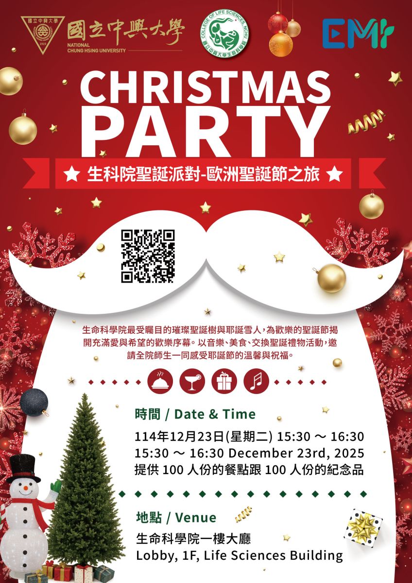 生科院將於12月23日生科院聖誕派對! 歡迎全院師生一同參與